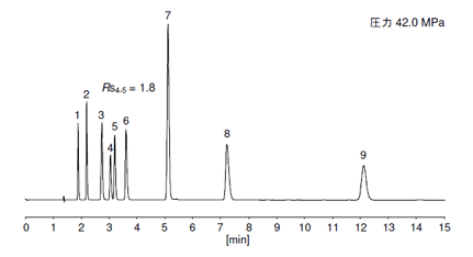 ヌクレオチド7種にヒポキサンチン及びイノシンを加えた核酸関連化合物9種を水系100%条件でも使用可能なCAPCELL PAK ADME-HR-Hにて分析しました。